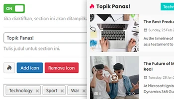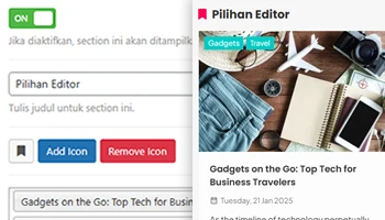 Tampilkan berita utama atau artikel terpenting di bagian atas halaman. Fitur ini memastikan konten terbaik Anda mendapatkan perhatian maksimal. Tampilannya sangat menarik berupa carousel besar yang mudah dilihat.