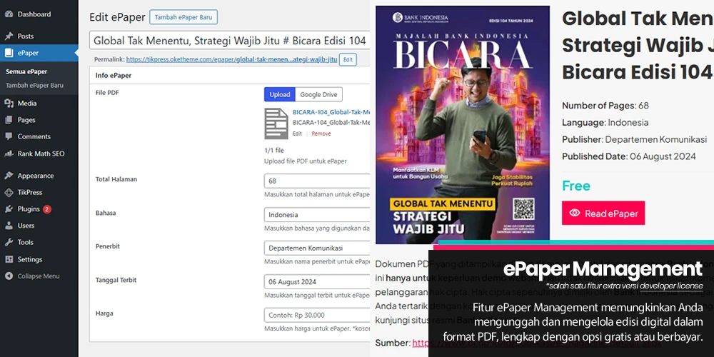 Kelola ePaper berita atau majalah digital dengan format PDF. Anda dapat membagikan ePaper secara gratis atau menjualnya dengan berbagai metode pemesanan.
