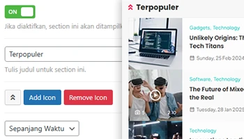 Tampilkan artikel paling populer berdasarkan jumlah kunjungan. Fitur ini membantu pengunjung menemukan konten yang paling diminati. Periode waktu juga dapat dengan mudah ditentukan agar sesuai dengan preferensi Anda.