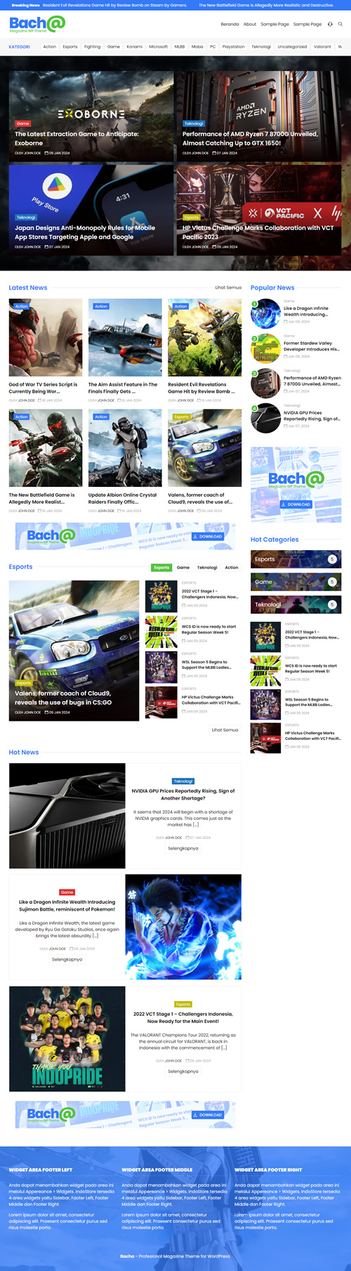 Desain tema ini menciptakan kesan profesional dan modern. Pemilihan warna yang bijak, tata letak yang estetis, dan penggunaan elemen desain yang terkini menegaskan kredibilitas website Anda sebagai sumber berita terpercaya dengan tampilan yang menarik bagi pengunjung.