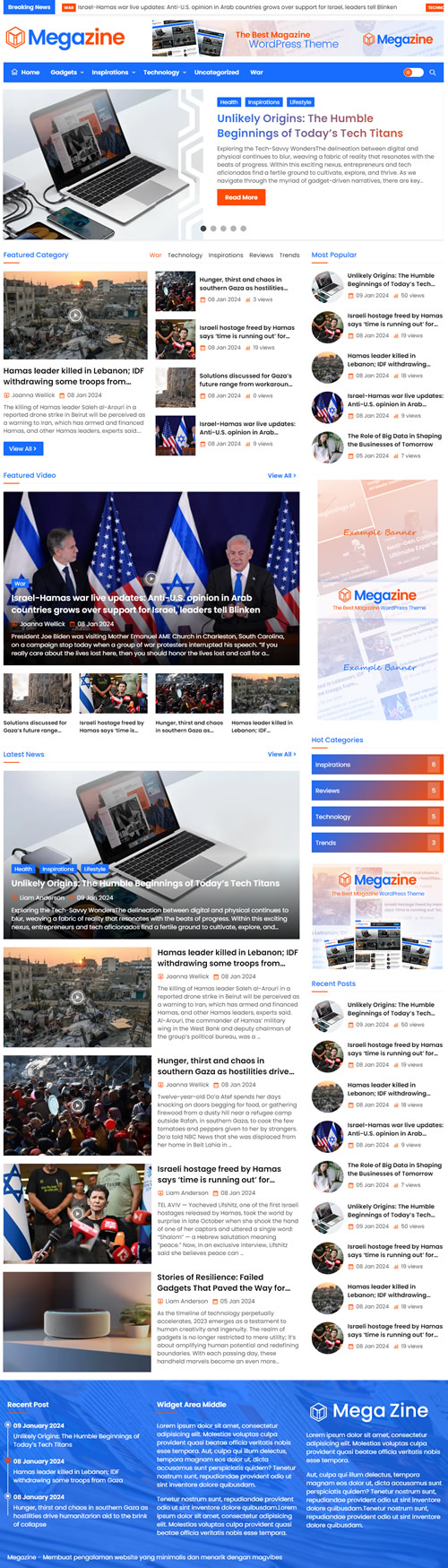 Megazine Theme memiliki fitur yang lengkap dan telah disesuaikan dengan fungsi dasar tema ini