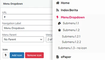 Tambahkan ikon pada menu navigasi untuk meningkatkan visualisasi dan kemudahan penggunaan. Fitur ini membuat navigasi website lebih menarik dan intuitif.